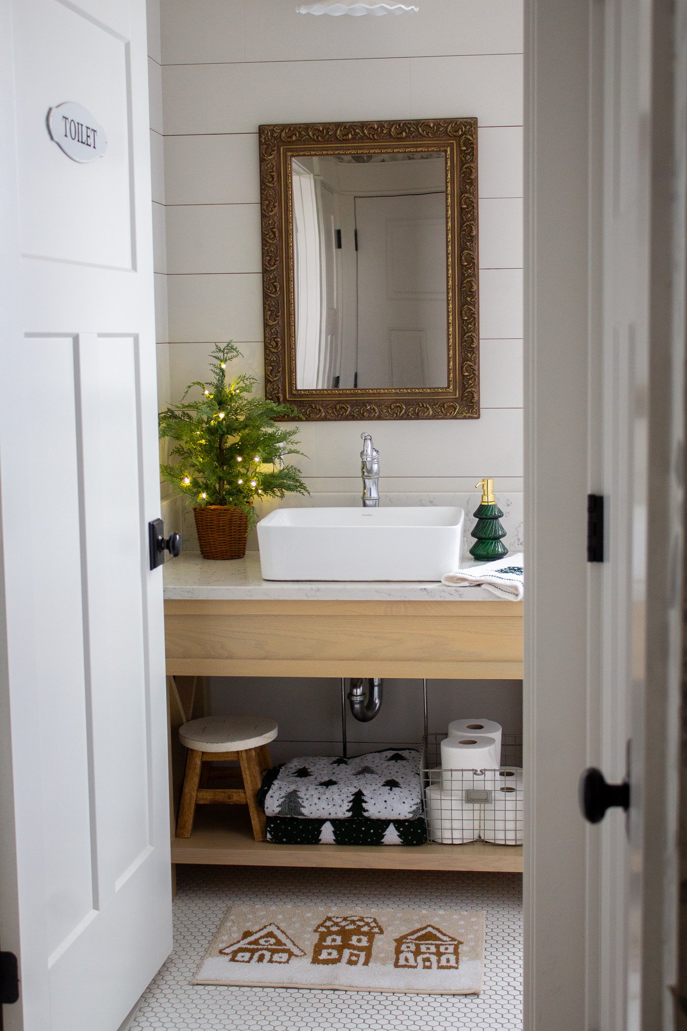 Last of all, I added some small holiday touches to our guest bath! This was so fun and each small item added instant charm to this space. I’ll link everything I can below.