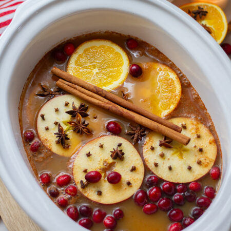 During the holiday season, we love to make delicious treats like these easy butter mints, simple butter cookies, famous Christmas fudge, and the easiest holiday caramels. But if you want to bring something unique and special to your holiday parties, this easy homemade crockpot wassail is an awesome option!