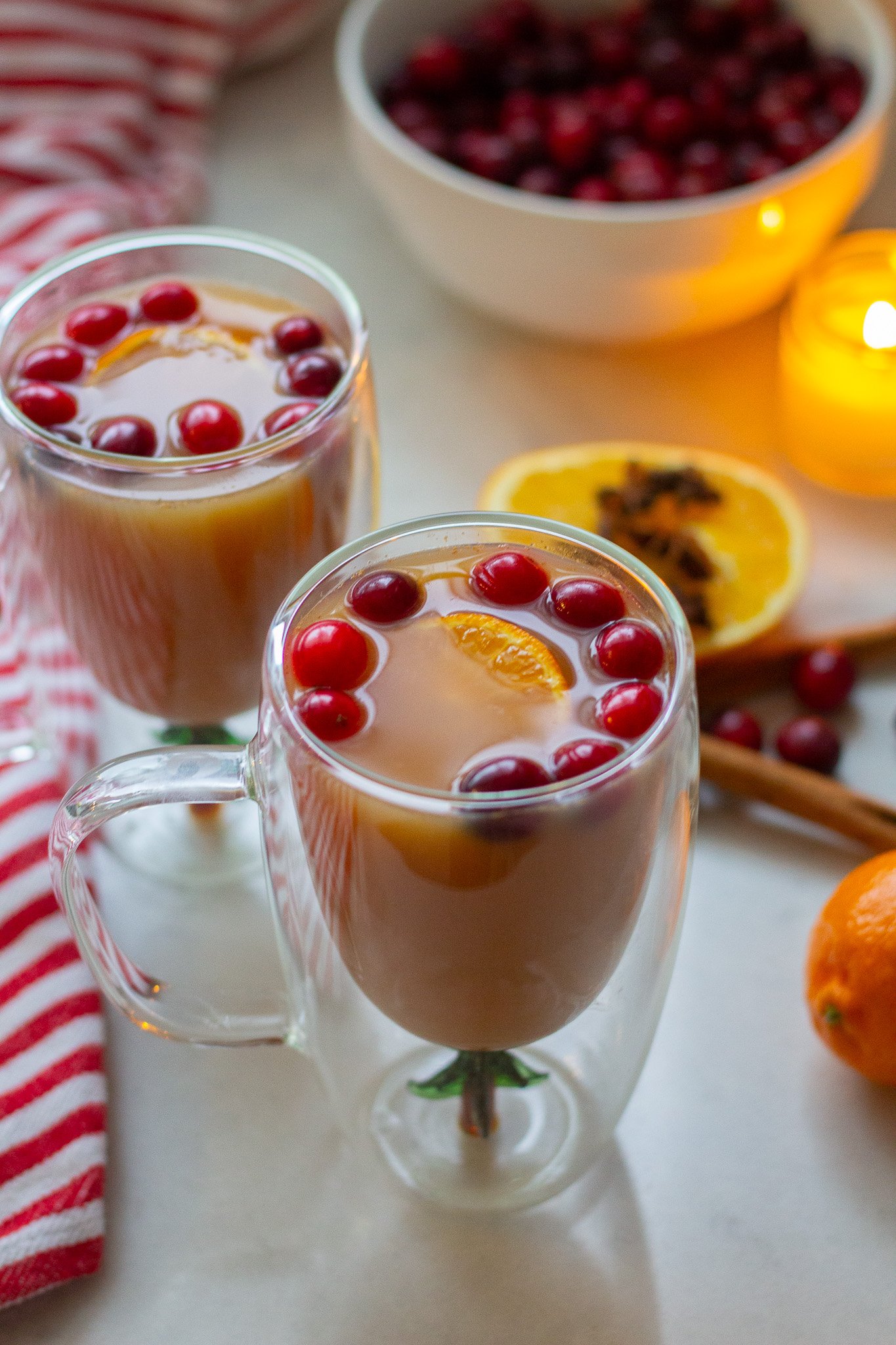 Traditional food and desserts are always the highlight of our holiday season but I love to include our rich and creamy crockpot hot cocoa, this easy spiced apple cider and this delicious creamy pumpkin spice steamer for something cozy. If you want to skip baking something this holiday season, you can even make a big batch of this wassail and drop it by to your neighbor or take as a hostess gift in a jar!