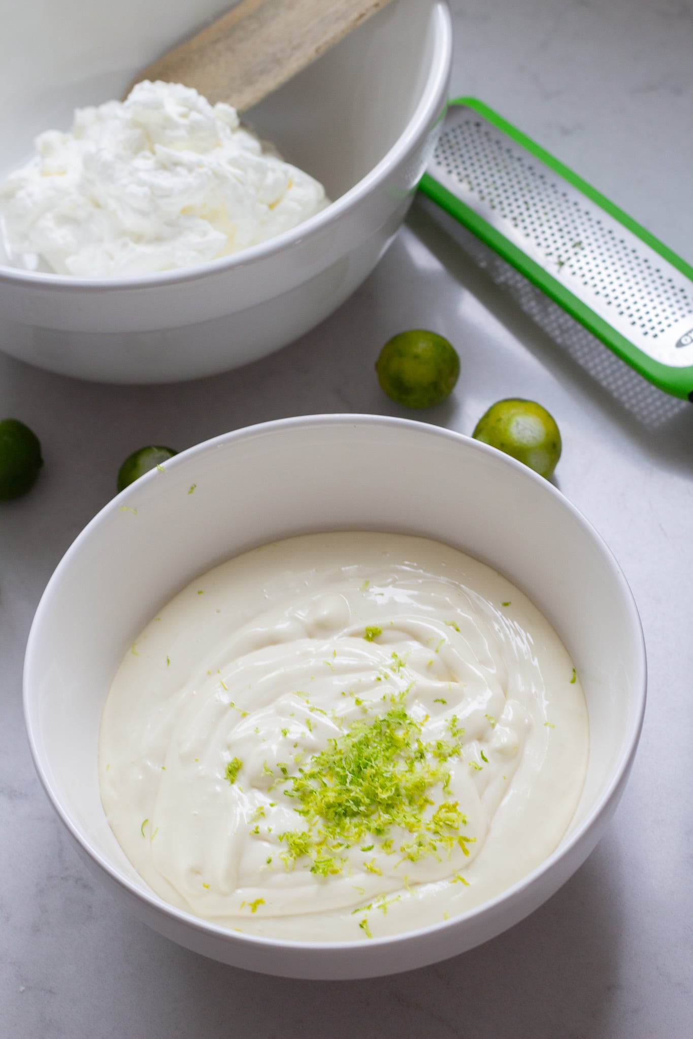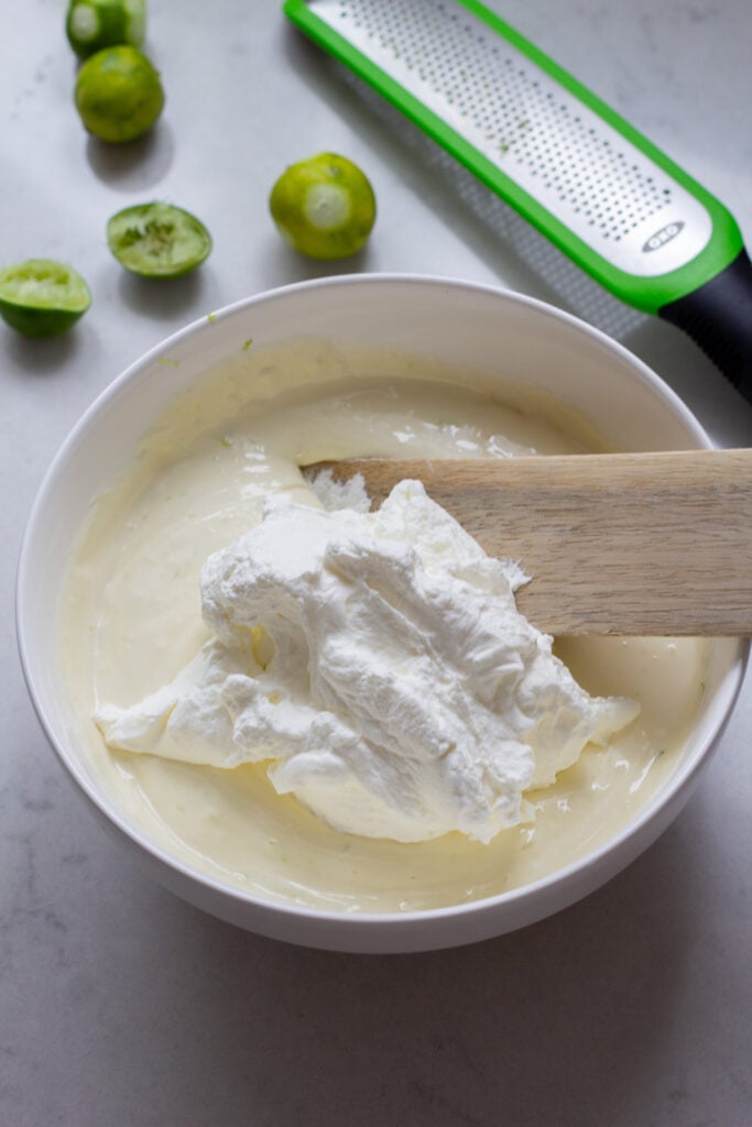 - Whisk together cream cheese, lime juice, zest, powdered sugar and vanilla extract.