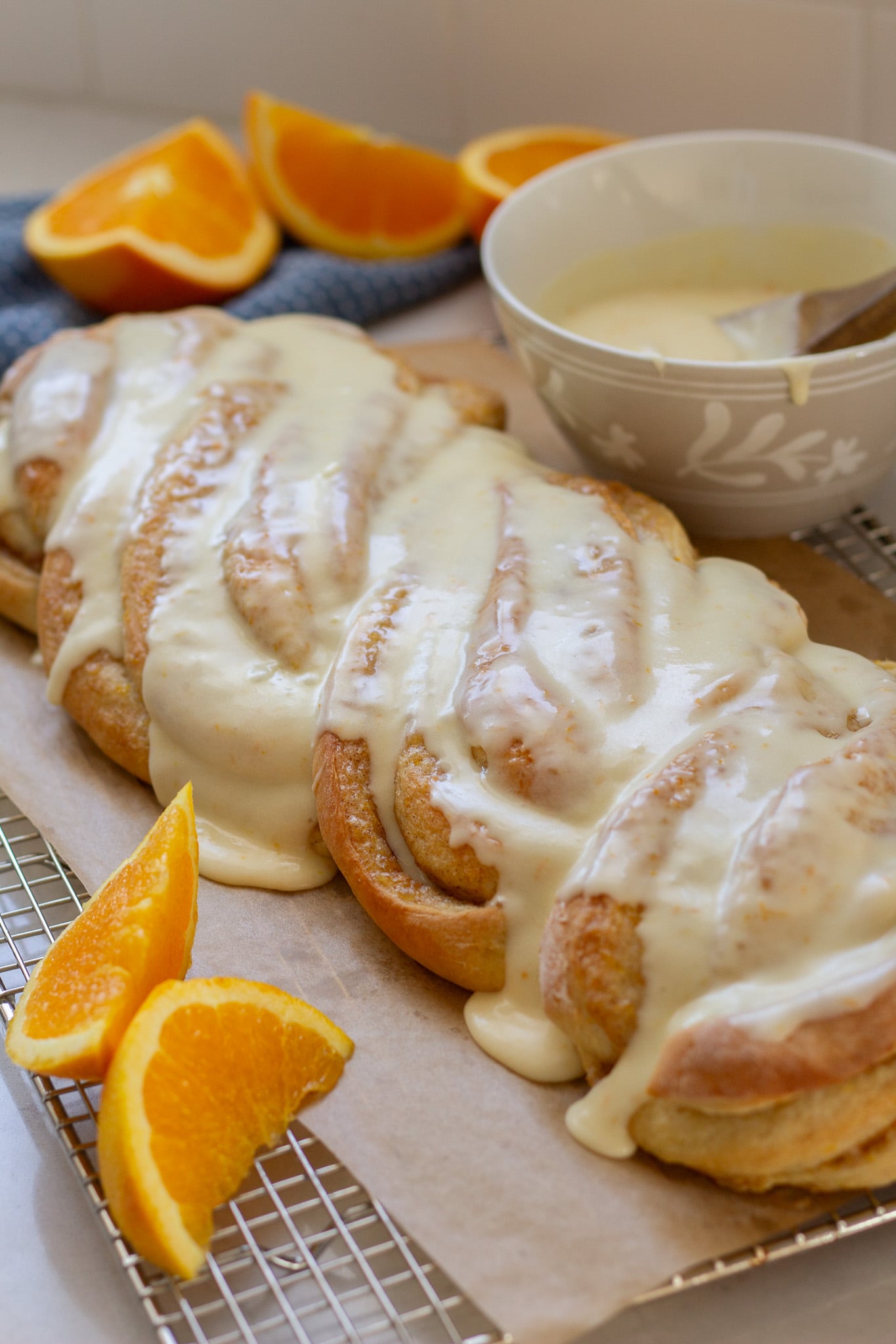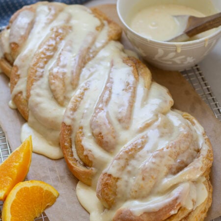 After baking, this twist can be topped with creamy orange frosting. We like to slice the twist and top each serving with extra orange glaze. It would make a great dessert to share at a party, baby or bridal shower, or to gift to a neighbor or friend.