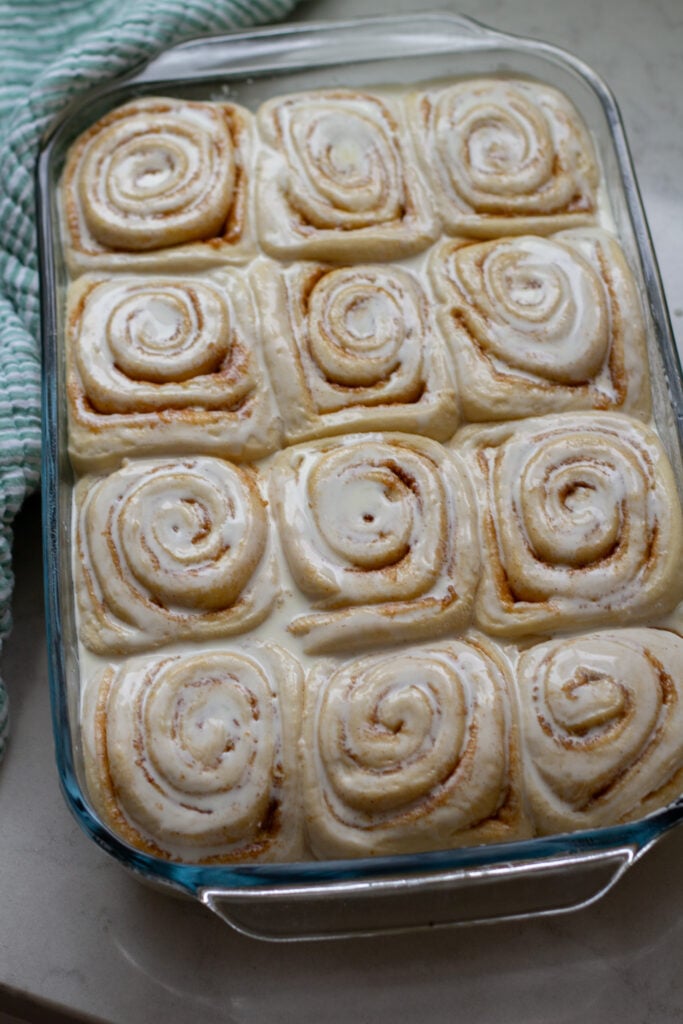 - What baking sheets do you use? I really like using glass 9×13’s for this recipe. If you want to use sheet pans you can, the rolls spread out a bit more. You can shop my baking sheet HERE!
