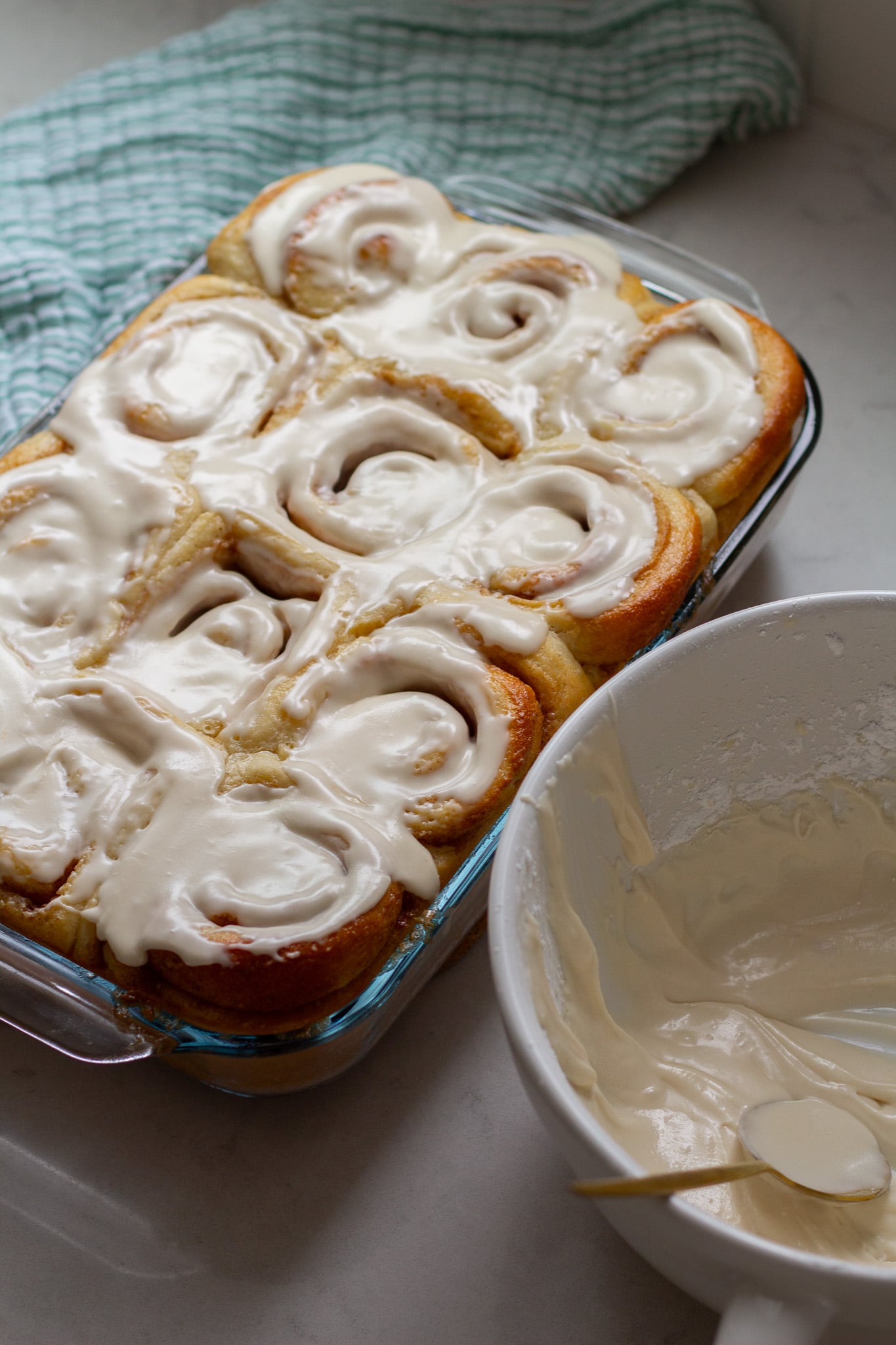 - Can this recipe be made ahead? Yes! I would suggest fully baking the rolls and freezing them without frosting. Wrap pan tightly with plastic wrap and then again with tin foil. When ready to use, allow to defrost fully before adding frosting.