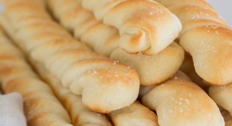 You will love this recipe for quick and easy homemade breadsticks. A perfect side for soup, offering a soft, salty and buttery bite!