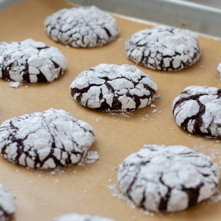 If you are a chocolate lover, these rich and chewy chocolate crinkle cookies make the perfect indulgent treat or dessert to enjoy. We love the crisp outer crust, and soft, fudgy molten center. This recipe is perfect for making and sharing at holiday parties and these cookies will be a definite crowd pleaser!