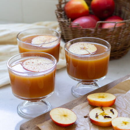 - Garnish the cider with apple slices with clove pressed in, orange slices or even cinnamon sticks if desired.