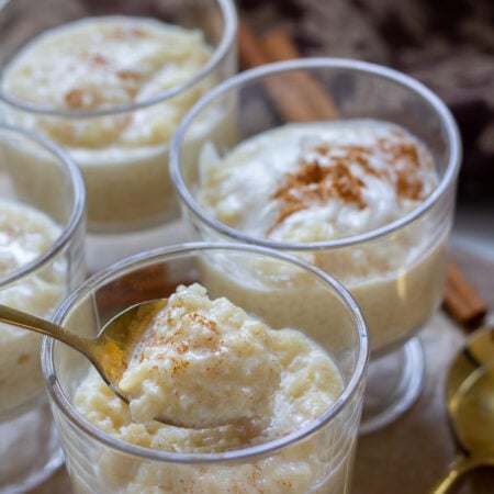 Lay out all of your ingredients.Place pre-cooked and cooled rice into a medium saucepan. Add 1 1/2 cups milk and the salt. Cook on low heat for 13-15 minutes until thick and creamy. In a small bowl, add sugar, remaining 1/2 cup milk, and beaten egg. Whisk together until well incorporated. With the heat on medium low, slowly pour egg mixture in a steady stream into the rice while using your other hand to stir so that the egg slowly tempers and doesn't scramble. The mixture should thicken and turn a slightly yellow color. It should be well blended, thick and creamy. Continue to allow to simmer for 2-3 minutes. Remove the saucepan from the stove, and add butter, vanilla and a dusting of cinnamon (if desired).Serve warm with whipped cream and a dusting of a bit more cinnamon on top.